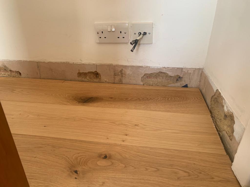 Other projects include revamping this table with a new oak tabletop, adding new skirting board...